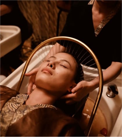 Indulge in our flagship service, a 60-minute ritual that transcends ordinary hair care. Using a proprietary blend of 100% natural herbs like ginger, lemongrass, and aloe vera, our therapists gently cleanse your scalp while performing acupressure techniques to: